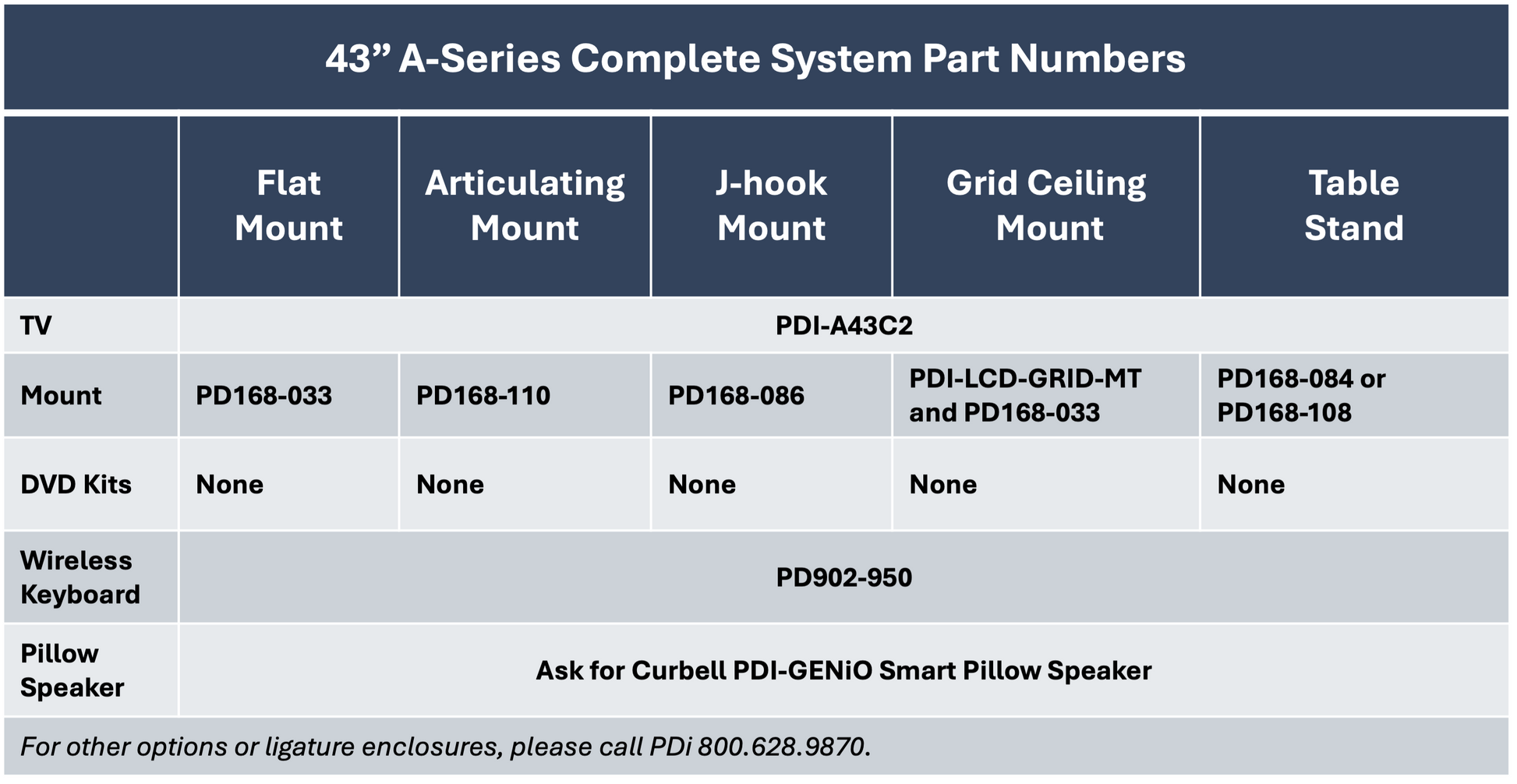 43" A-Series Smart HDTV Hospital Display | PDI-A43C2