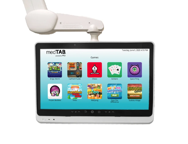 - medTAB arm-mounted patient displays reduce neck, back, and eye strain. PDi builds the complete, arm-mounted touchscreen patient TV system with secure PDi arms, arm mounts, and low-voltage power supplies.
